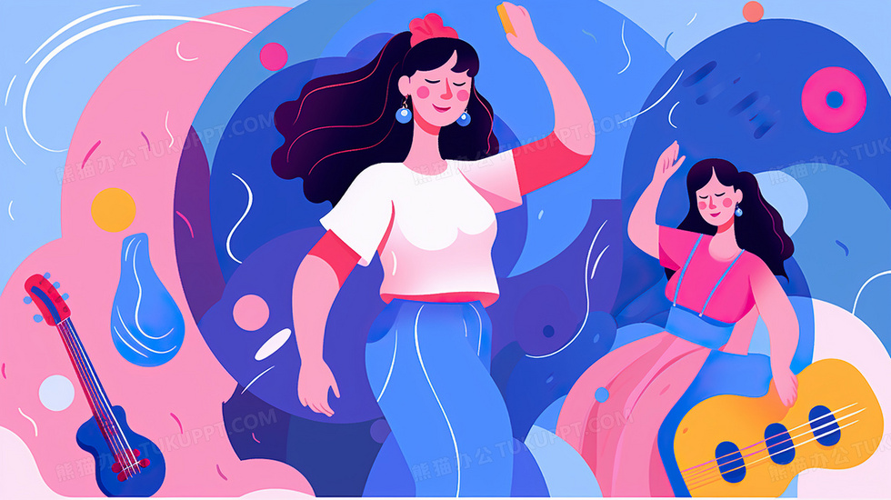 本作品内容为抽象人物音乐节卡通插画, 格式为 jpg, 大小5 MB, 图片尺寸为2912 x 1632, 源文件无水印, 欢迎使用熊猫办公。 如认为平台内容涉嫌侵权,可通过邮件:tousu@tukuppt.com提出书面通知,我们将及时处理。