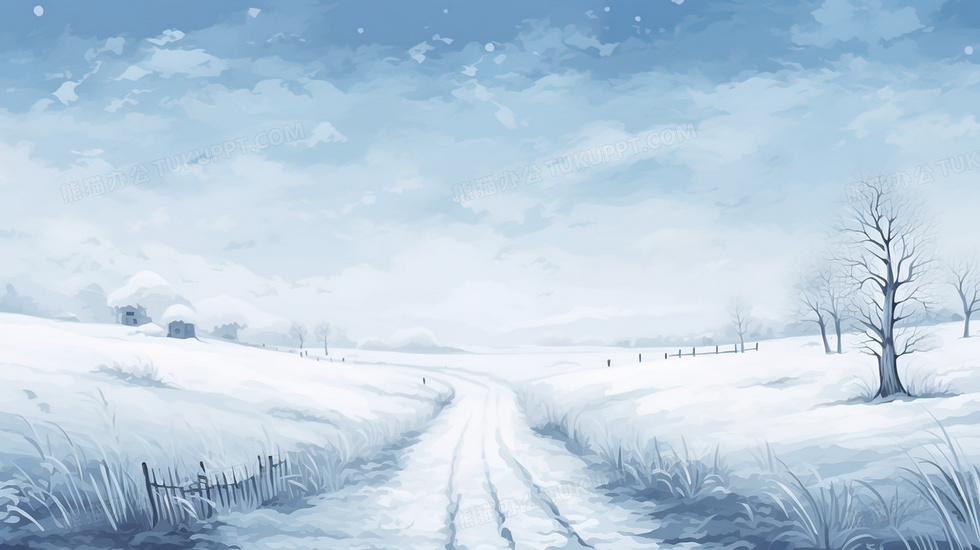 本作品内容为一片白茫茫落满大雪的田野风景插画, 格式为 jpg, 大小4 MB, 图片尺寸为2912 x 1632, 源文件无水印, 欢迎使用熊猫办公。 如认为平台内容涉嫌侵权,可通过邮件:tousu@tukuppt.com提出书面通知,我们将及时处理。