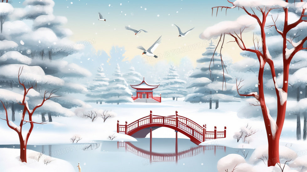 本作品内容为冬季森林活泼凉亭小桥雪景插画, 格式为 jpg, 大小5 MB, 图片尺寸为2912 x 1632, 源文件无水印, 欢迎使用熊猫办公。 如认为平台内容涉嫌侵权,可通过邮件:tousu@tukuppt.com提出书面通知,我们将及时处理。