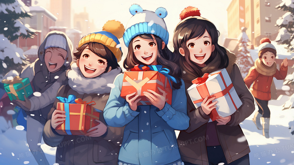 本作品内容为下雪天朋友们聚会开心拿着礼物插画, 格式为 jpg, 大小5 MB, 图片尺寸为2912 x 1632, 源文件无水印, 欢迎使用熊猫办公。 如认为平台内容涉嫌侵权,可通过邮件:tousu@tukuppt.com提出书面通知,我们将及时处理。