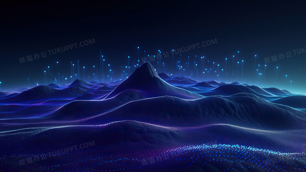 本作品内容为蓝色商务科技感起伏山脉和发光线条创意宣传插画, 格式为 jpg, 大小6 MB, 图片尺寸为2912 x 1632, 源文件无水印, 欢迎使用熊猫办公。 如认为平台内容涉嫌侵权,可通过邮件:tousu@tukuppt.com提出书面通知,我们将及时处理。