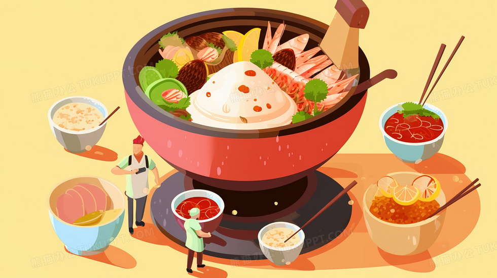 本作品内容为中国火锅食品扁平化插画, 格式为 jpg, 大小4 MB, 图片尺寸为2912 x 1632, 源文件无水印, 欢迎使用熊猫办公。 如认为平台内容涉嫌侵权,可通过邮件:tousu@tukuppt.com提出书面通知,我们将及时处理。