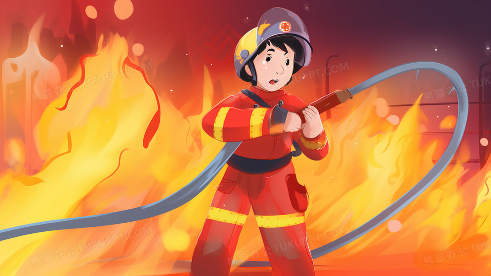 本作品内容为火灾现场正在接水管灭火的救援人员插画, 格式为 jpg, 大小4 MB, 图片尺寸为2912 x 1632, 源文件无水印, 欢迎使用熊猫办公。 如认为平台内容涉嫌侵权,可通过邮件:tousu@tukuppt.com提出书面通知,我们将及时处理。