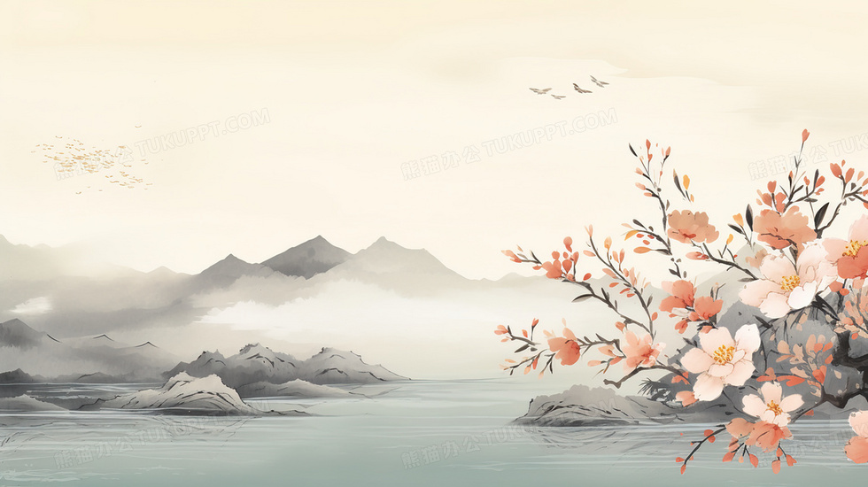 本作品内容为中国风水墨晕染山水风景插画, 格式为 jpg, 大小4 MB, 图片尺寸为2912 x 1632, 源文件无水印, 欢迎使用熊猫办公。 如认为平台内容涉嫌侵权,可通过邮件:tousu@tukuppt.com提出书面通知,我们将及时处理。