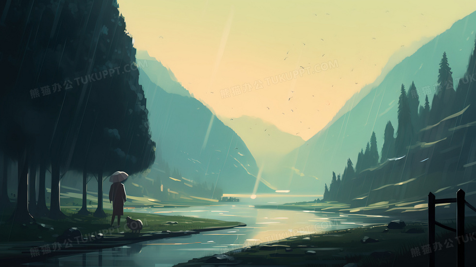本作品内容为山谷树林湖泊的唯美雨景插画, 格式为 jpg, 大小4 MB, 图片尺寸为2912 x 1632, 源文件无水印, 欢迎使用熊猫办公。 如认为平台内容涉嫌侵权,可通过邮件:tousu@tukuppt.com提出书面通知,我们将及时处理。