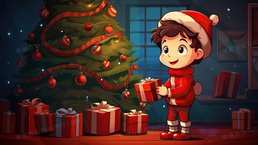 本作品内容为卡通圣诞节男孩圣诞礼物节日插画, 格式为 jpg, 大小5 MB, 图片尺寸为2912 x 1632, 源文件无水印, 欢迎使用熊猫办公。 如认为平台内容涉嫌侵权,可通过邮件:tousu@tukuppt.com提出书面通知,我们将及时处理。