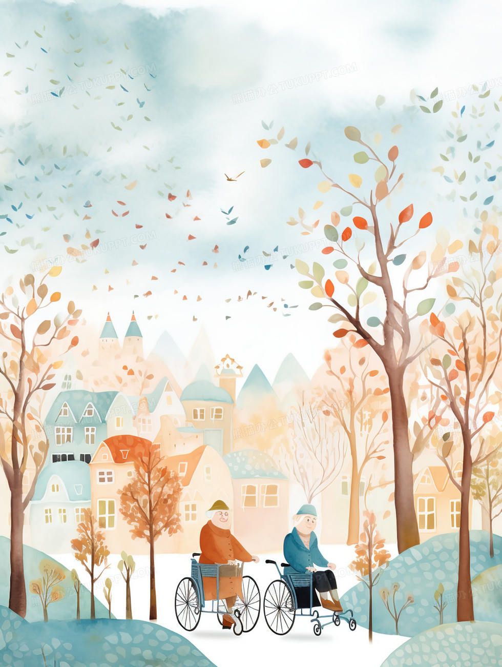 本作品内容为深秋树林里坐轮椅的白发老人夫妻温馨插画, 格式为 jpg, 大小5 MB, 图片尺寸为1856 x 2464, 源文件无水印, 欢迎使用熊猫办公。 如认为平台内容涉嫌侵权,可通过邮件:tousu@tukuppt.com提出书面通知,我们将及时处理。