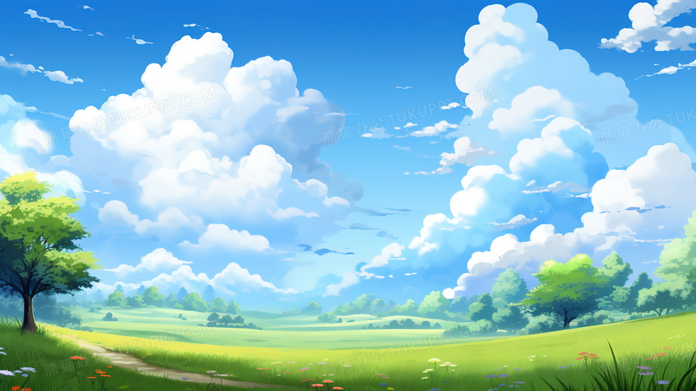 本作品内容为蓝天白云下广阔的青青草原插画, 格式为 jpg, 大小5 MB, 图片尺寸为2912 x 1632, 源文件无水印, 欢迎使用熊猫办公。 如认为平台内容涉嫌侵权,可通过邮件:tousu@tukuppt.com提出书面通知,我们将及时处理。