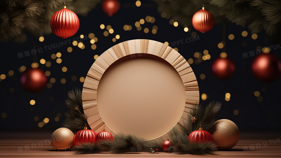本作品内容为圣诞球装饰圆形展示框插画, 格式为 jpg, 大小5 MB, 图片尺寸为2912 x 1632, 源文件无水印, 欢迎使用熊猫办公。 如认为平台内容涉嫌侵权,可通过邮件:tousu@tukuppt.com提出书面通知,我们将及时处理。