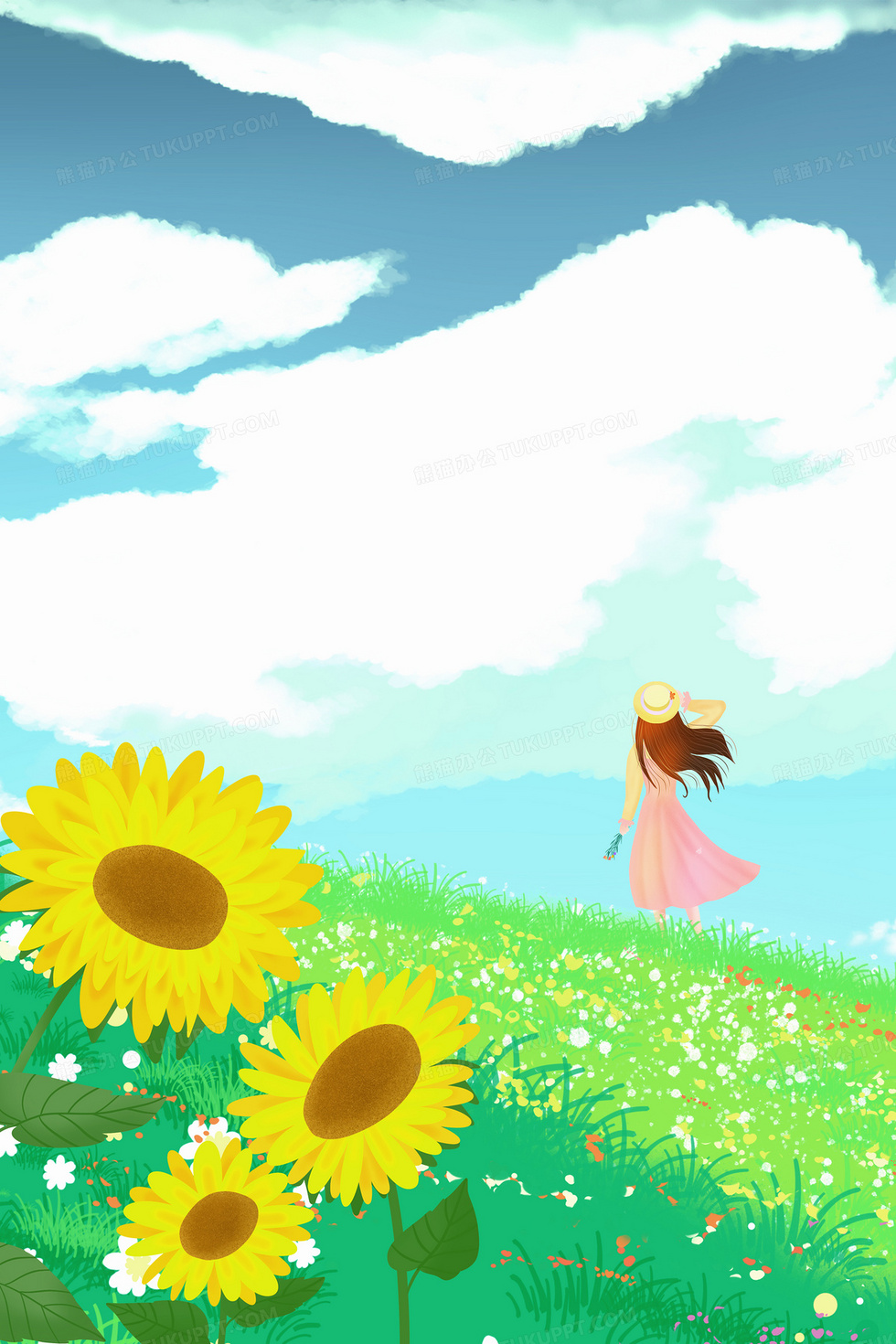 本作品内容为向日葵春天风景女孩插画背景, 格式为 psd, 大小73 MB, 图片尺寸为3543 x 5314, 作品中背景图片无需修改, 源文件无水印,可以直接使用, 欢迎使用熊猫办公。 如认为平台内容涉嫌侵权,可通过邮件:tousu@tukuppt.com提出书面通知,我们将及时处理。