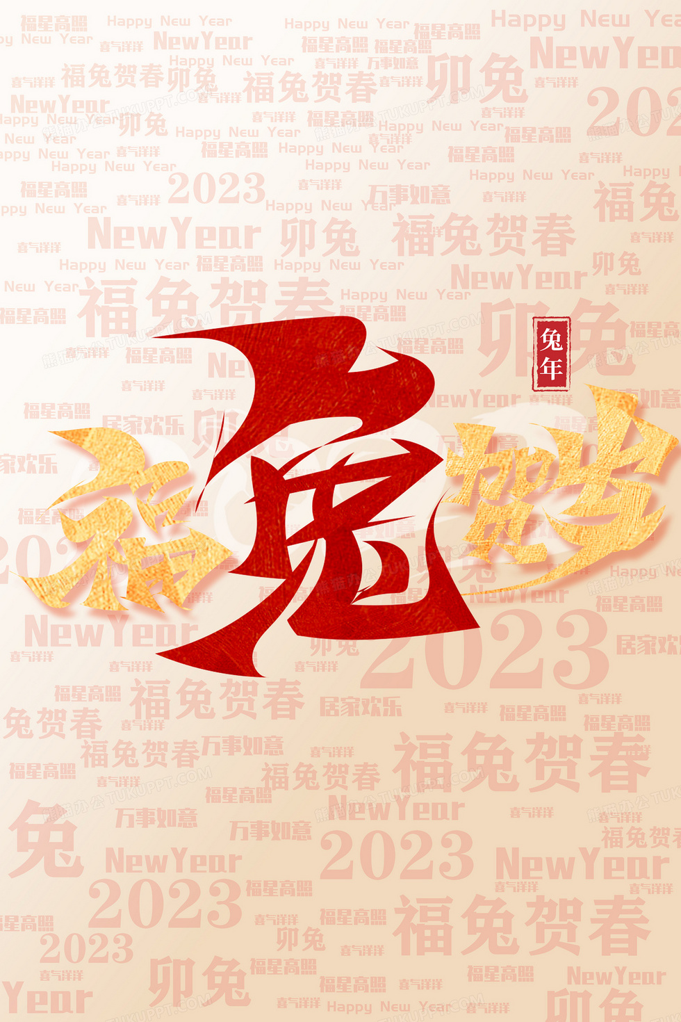 本作品内容为福兔贺岁2023新年祝福语新春祝福背景, 格式为 psd, 大小46 MB, 图片尺寸为3543 x 5315, 作品中背景图片无需修改, 源文件无水印,可以直接使用, 欢迎使用熊猫办公。 如认为平台内容涉嫌侵权,可通过邮件:tousu@tukuppt.com提出书面通知,我们将及时处理。