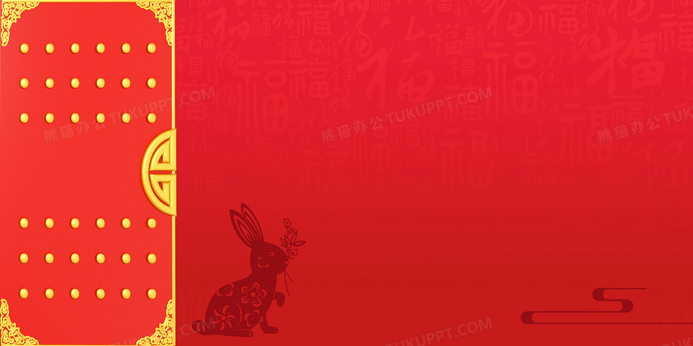 本作品内容为红色大气兔年开门红背景图, 格式为 psd, 大小22 MB, 图片尺寸为4724 x 2362, 作品中背景图片无需修改, 源文件无水印,可以直接使用, 欢迎使用熊猫办公。 如认为平台内容涉嫌侵权,可通过邮件:tousu@tukuppt.com提出书面通知,我们将及时处理。