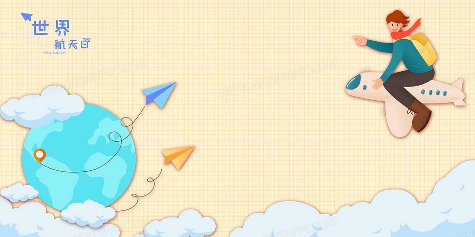 本作品内容为卡通扁平的世界航天日飞机飞行地球背景, 格式为 psd, 大小5 MB, 图片尺寸为4724 x 2362, 作品中背景图片无需修改, 源文件无水印,可以直接使用, 欢迎使用熊猫办公。 如认为平台内容涉嫌侵权,可通过邮件:tousu@tukuppt.com提出书面通知,我们将及时处理。
