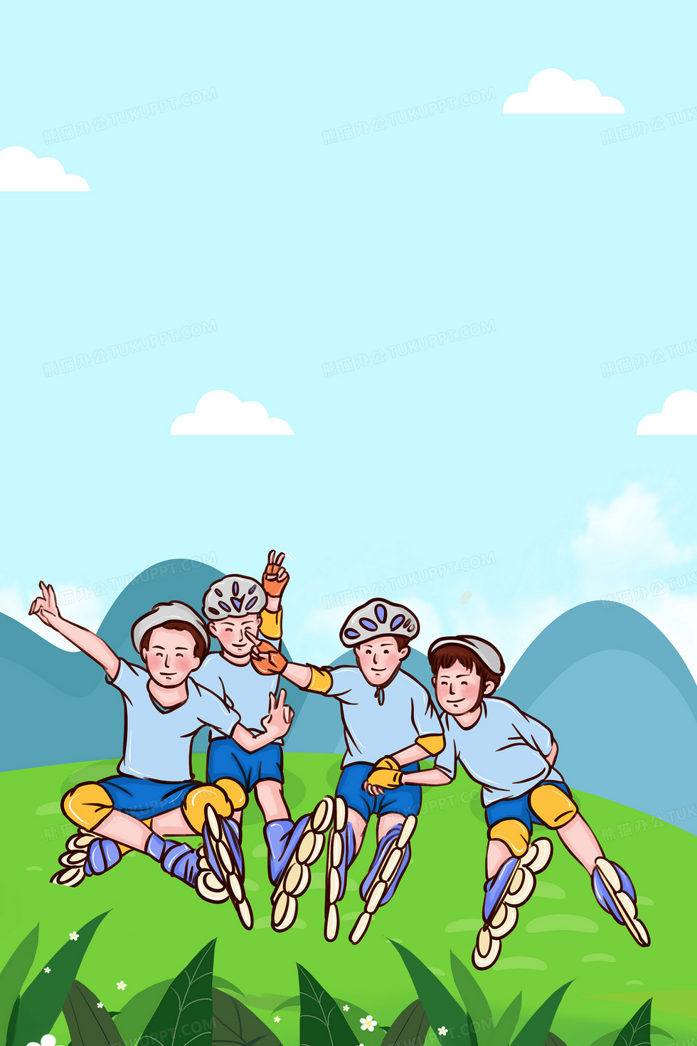 本作品内容为简约手绘清新卡通绿色人物运动轮滑背景, 格式为 psd, 大小16 MB, 图片尺寸为3543 x 5315, 作品中背景图片无需修改, 源文件无水印,可以直接使用, 欢迎使用熊猫办公。 如认为平台内容涉嫌侵权,可通过邮件:tousu@tukuppt.com提出书面通知,我们将及时处理。