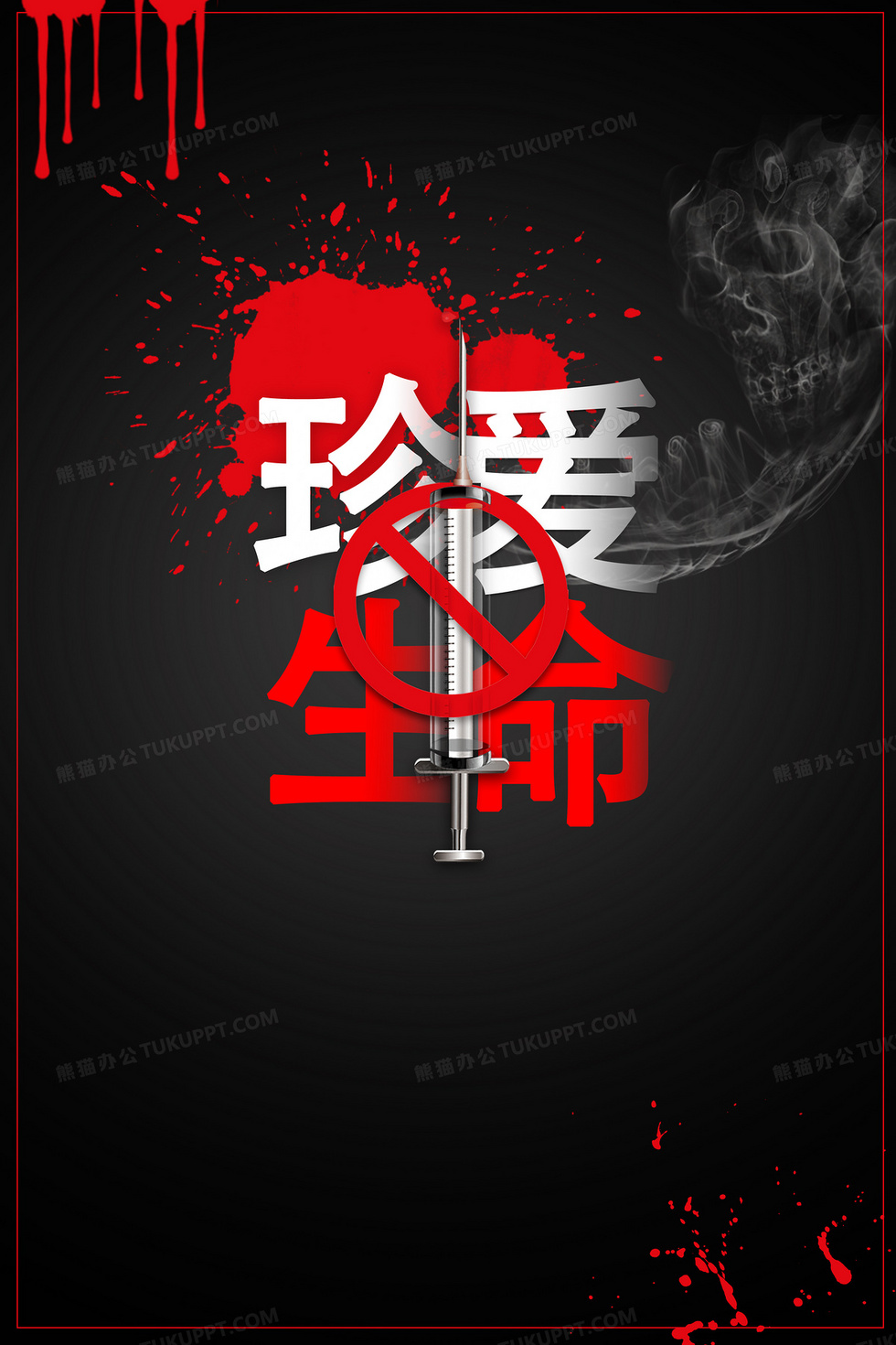本作品内容为珍爱生命远离毒品公益宣传禁毒背景, 格式为 psd, 大小24 MB, 图片尺寸为3543 x 5315, 作品中背景图片无需修改, 源文件无水印,可以直接使用, 欢迎使用熊猫办公。 如认为平台内容涉嫌侵权,可通过邮件:tousu@tukuppt.com提出书面通知,我们将及时处理。