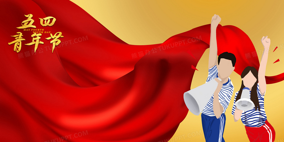 本作品内容为红金色创意五四青年节绸带背景, 格式为 psd, 大小14 MB, 图片尺寸为4724 x 2362, 作品中背景图片无需修改, 源文件无水印,可以直接使用, 欢迎使用熊猫办公。 如认为平台内容涉嫌侵权,可通过邮件:tousu@tukuppt.com提出书面通知,我们将及时处理。