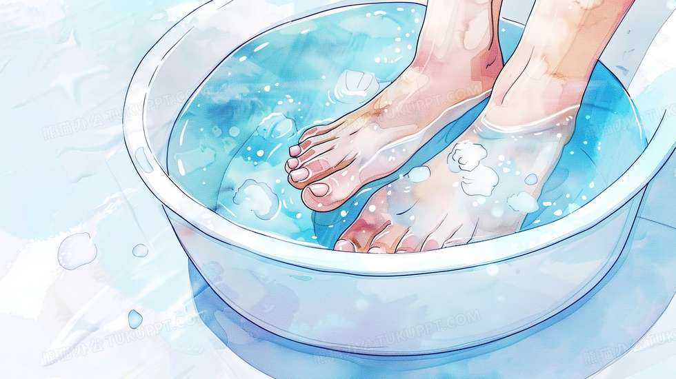 本作品内容为水盆泡脚养生的脚部特写插画, 格式为 jpg, 大小3 MB, 图片尺寸为2912 x 1632, 源文件无水印, 欢迎使用熊猫办公。 如认为平台内容涉嫌侵权,可通过邮件:tousu@tukuppt.com提出书面通知,我们将及时处理。