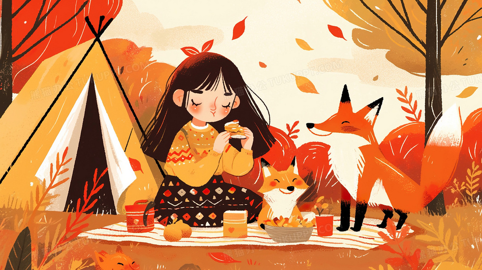 本作品内容为秋天女孩户外露营郊游插画, 格式为 jpg, 大小3 MB, 图片尺寸为2912 x 1632, 源文件无水印, 欢迎使用熊猫办公。 如认为平台内容涉嫌侵权,可通过邮件:tousu@tukuppt.com提出书面通知,我们将及时处理。