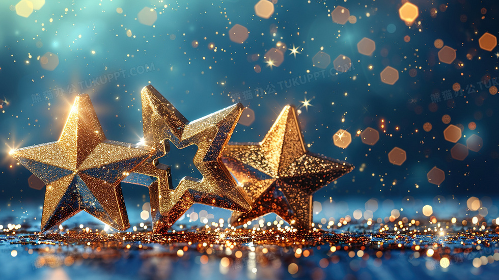 本作品内容为金色立体五角星梦幻背景, 格式为 jpg, 大小3 MB, 图片尺寸为2912 x 1632, 作品中背景图片无需修改, 源文件无水印,可以直接使用, 欢迎使用熊猫办公。 如认为平台内容涉嫌侵权,可通过邮件:tousu@tukuppt.com提出书面通知,我们将及时处理。