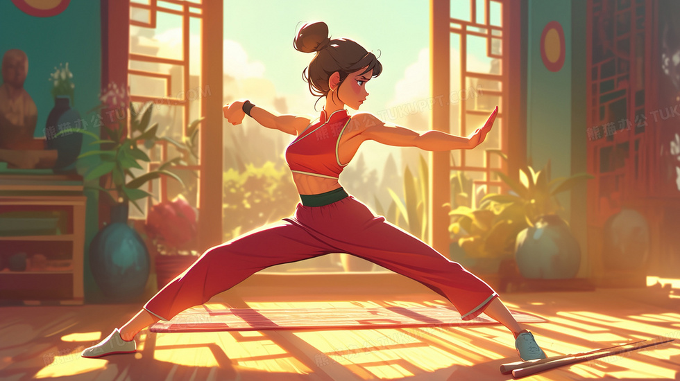 本作品内容为武术锻炼运动的女孩插画, 格式为 jpg, 大小2 MB, 图片尺寸为2912 x 1632, 源文件无水印, 欢迎使用熊猫办公。 如认为平台内容涉嫌侵权,可通过邮件:tousu@tukuppt.com提出书面通知,我们将及时处理。