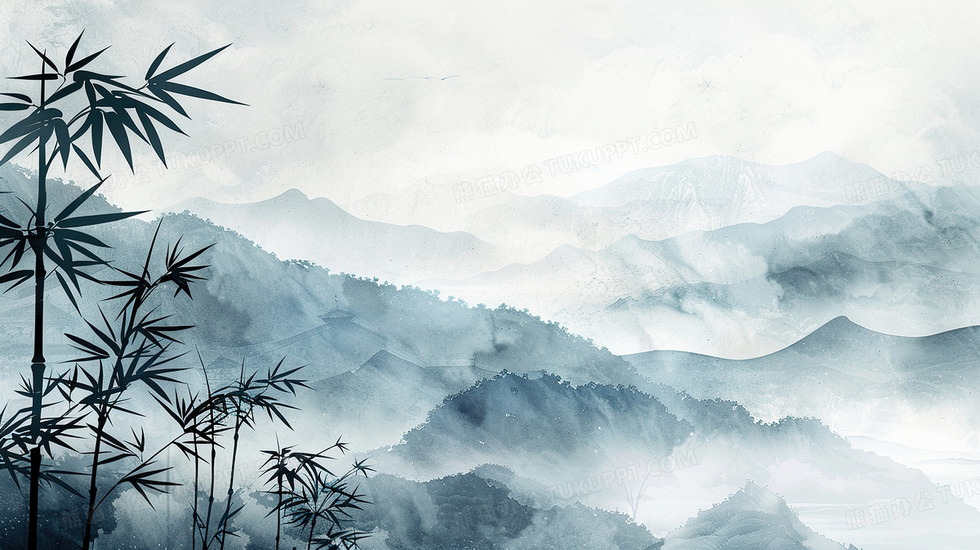 本作品内容为黑白山水中国风水墨背景, 格式为 jpg, 大小4 MB, 图片尺寸为2912 x 1632, 作品中背景图片无需修改, 源文件无水印,可以直接使用, 欢迎使用熊猫办公。 如认为平台内容涉嫌侵权,可通过邮件:tousu@tukuppt.com提出书面通知,我们将及时处理。