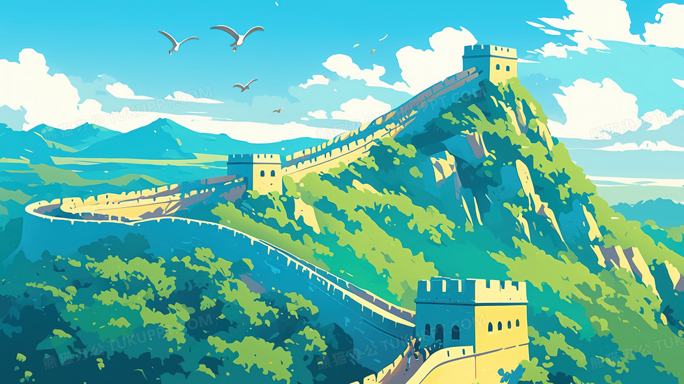 本作品内容为蓝天白云卡通国庆节长城插画, 格式为 jpg, 大小3 MB, 图片尺寸为2912 x 1632, 源文件无水印, 欢迎使用熊猫办公。 如认为平台内容涉嫌侵权,可通过邮件:tousu@tukuppt.com提出书面通知,我们将及时处理。