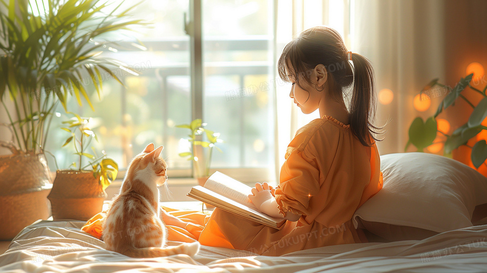 本作品内容为房间里窗户边小猫咪陪小女孩在床上看书插画, 格式为 jpg, 大小3 MB, 图片尺寸为2912 x 1632, 源文件无水印, 欢迎使用熊猫办公。 如认为平台内容涉嫌侵权,可通过邮件:tousu@tukuppt.com提出书面通知,我们将及时处理。