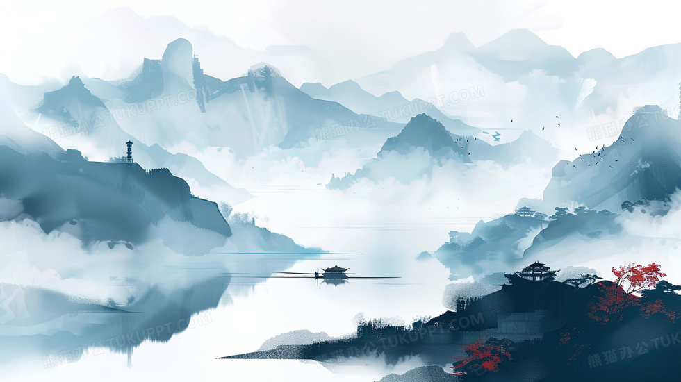 本作品内容为中国风山水日落插画, 格式为 jpg, 大小2 MB, 图片尺寸为2912 x 1632, 源文件无水印, 欢迎使用熊猫办公。 如认为平台内容涉嫌侵权,可通过邮件:tousu@tukuppt.com提出书面通知,我们将及时处理。