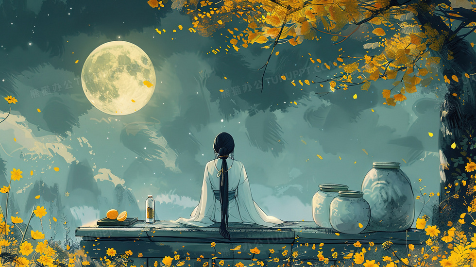 本作品内容为月下独自赏月的女子的插画, 格式为 jpg, 大小3 MB, 图片尺寸为2912 x 1632, 源文件无水印, 欢迎使用熊猫办公。 如认为平台内容涉嫌侵权,可通过邮件:tousu@tukuppt.com提出书面通知,我们将及时处理。