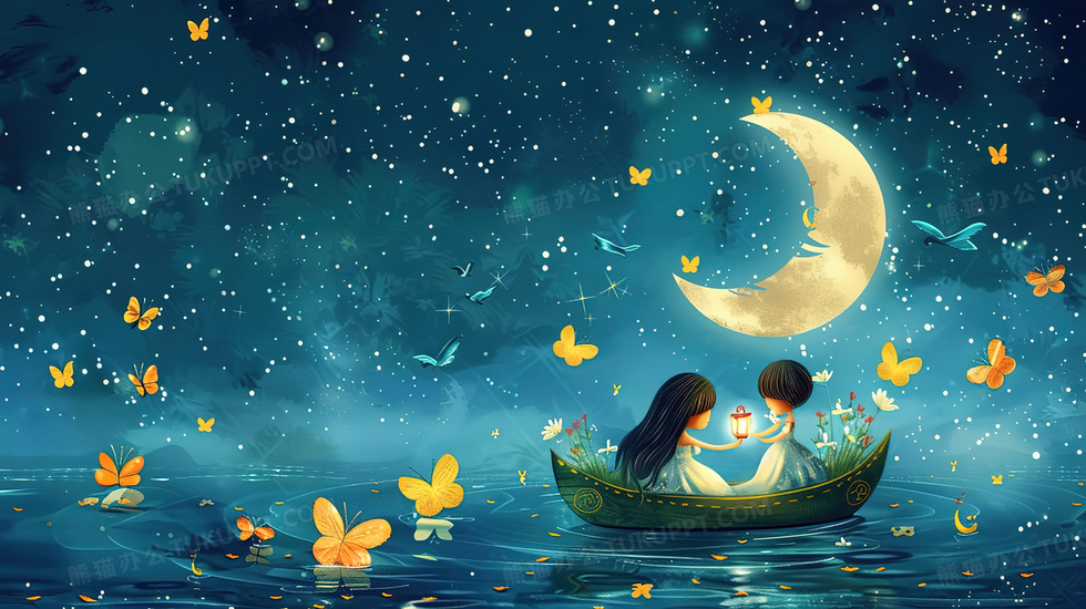本作品内容为唯美夜晚星空下湖面船上的小女孩插画, 格式为 jpg, 大小3 MB, 图片尺寸为2912 x 1632, 源文件无水印, 欢迎使用熊猫办公。 如认为平台内容涉嫌侵权,可通过邮件:tousu@tukuppt.com提出书面通知,我们将及时处理。
