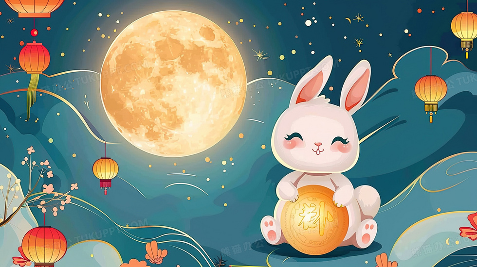 本作品内容为中国风中秋节玉兔送祝福庆中秋插画, 格式为 jpg, 大小3 MB, 图片尺寸为2912 x 1632, 源文件无水印, 欢迎使用熊猫办公。 如认为平台内容涉嫌侵权,可通过邮件:tousu@tukuppt.com提出书面通知,我们将及时处理。