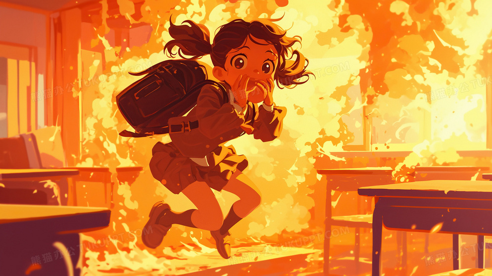 本作品内容为女孩教室安全着火惊恐逃生插画, 格式为 jpg, 大小3 MB, 图片尺寸为2912 x 1632, 源文件无水印, 欢迎使用熊猫办公。 如认为平台内容涉嫌侵权,可通过邮件:tousu@tukuppt.com提出书面通知,我们将及时处理。