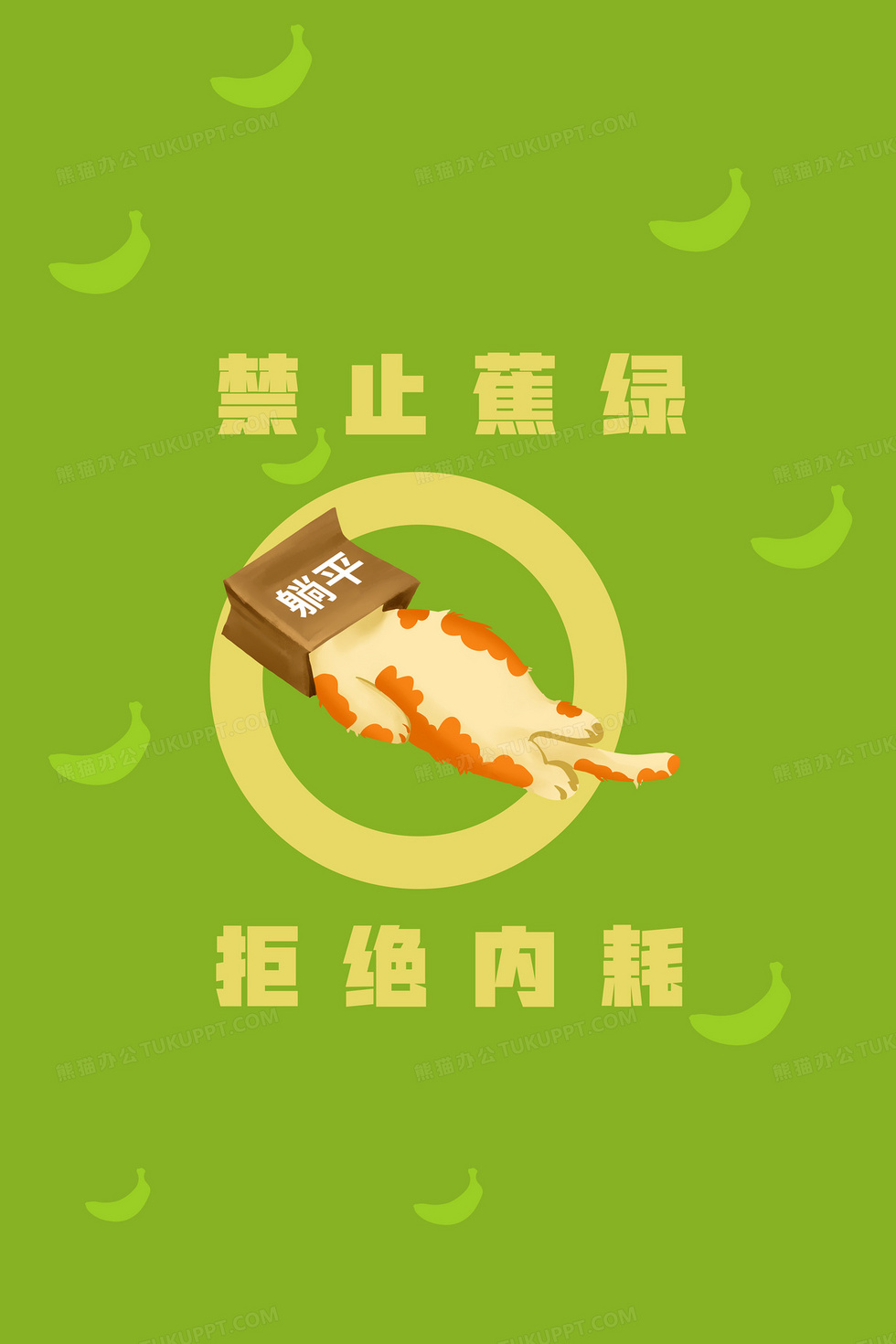 本作品内容为禁止蕉绿速速躺平绿色清新手机壁纸, 格式为 psd, 大小7 MB, 图片尺寸为3543 x 5314, 作品中背景图片无需修改, 源文件无水印,可以直接使用, 欢迎使用熊猫办公。 如认为平台内容涉嫌侵权,可通过邮件:tousu@tukuppt.com提出书面通知,我们将及时处理。