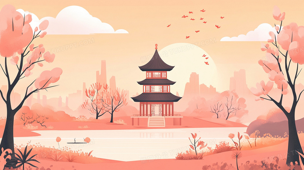 本作品内容为中式园林宝塔建筑插画, 格式为 jpg, 大小3 MB, 图片尺寸为2912 x 1632, 源文件无水印, 欢迎使用熊猫办公。 如认为平台内容涉嫌侵权,可通过邮件:tousu@tukuppt.com提出书面通知,我们将及时处理。