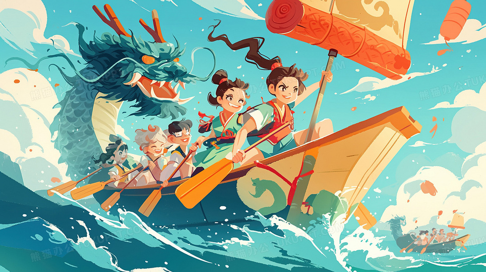 本作品内容为国潮赛龙舟比赛创意插画, 格式为 jpg, 大小3 MB, 图片尺寸为2912 x 1632, 源文件无水印, 欢迎使用熊猫办公。 如认为平台内容涉嫌侵权,可通过邮件:tousu@tukuppt.com提出书面通知,我们将及时处理。