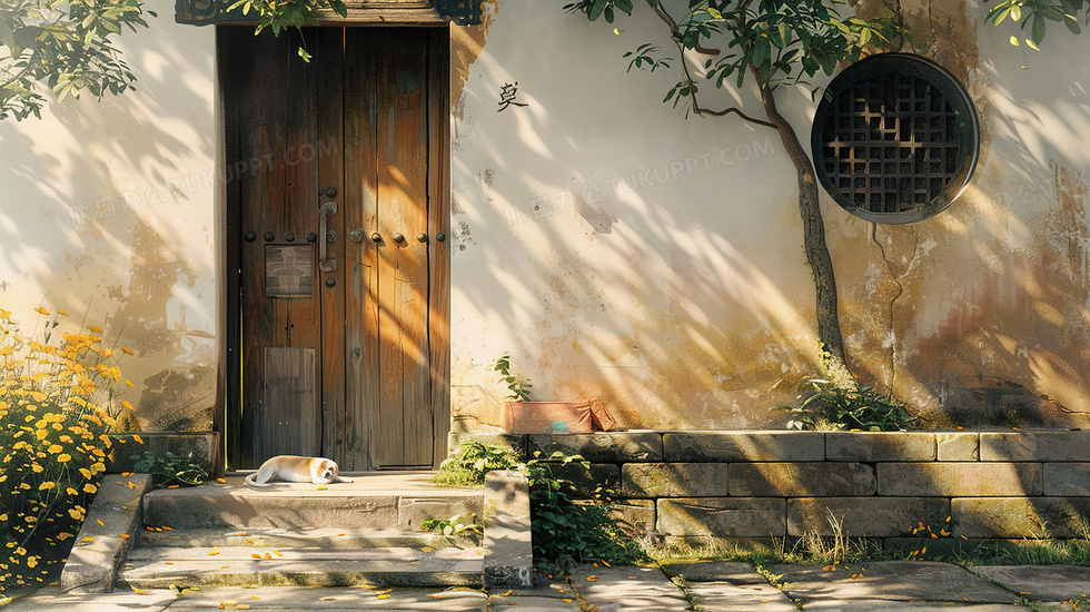 本作品内容为中国古建筑农家小院门口插画, 格式为 jpg, 大小5 MB, 图片尺寸为2912 x 1632, 源文件无水印, 欢迎使用熊猫办公。 如认为平台内容涉嫌侵权,可通过邮件:tousu@tukuppt.com提出书面通知,我们将及时处理。