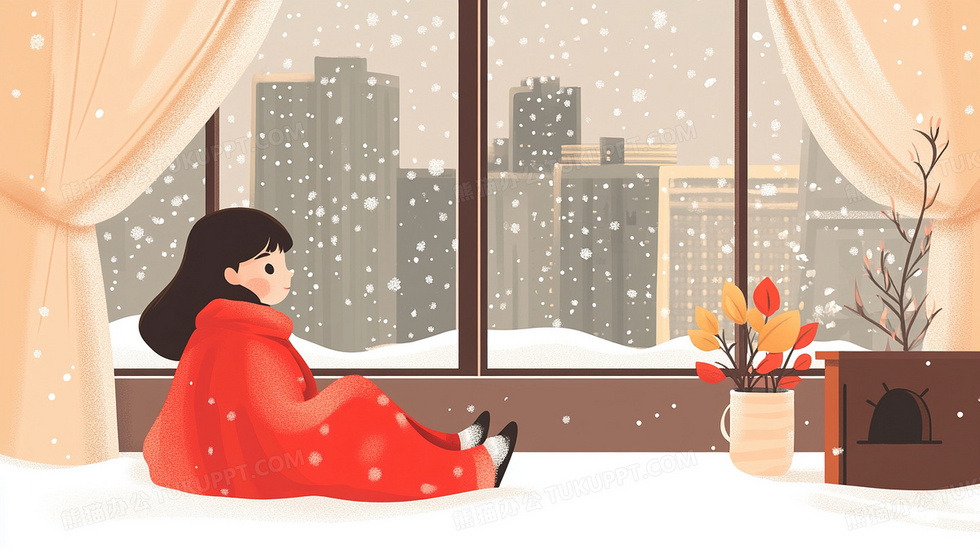 本作品内容为女孩窗前温暖冬天小雪节气卡通插画, 格式为 jpg, 大小3 MB, 图片尺寸为2912 x 1632, 源文件无水印, 欢迎使用熊猫办公。 如认为平台内容涉嫌侵权,可通过邮件:tousu@tukuppt.com提出书面通知,我们将及时处理。