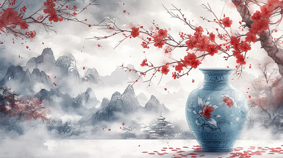 本作品内容为中国风水墨山水瓷器花瓶插画, 格式为 jpg, 大小4 MB, 图片尺寸为2912 x 1632, 源文件无水印, 欢迎使用熊猫办公。 如认为平台内容涉嫌侵权,可通过邮件:tousu@tukuppt.com提出书面通知,我们将及时处理。