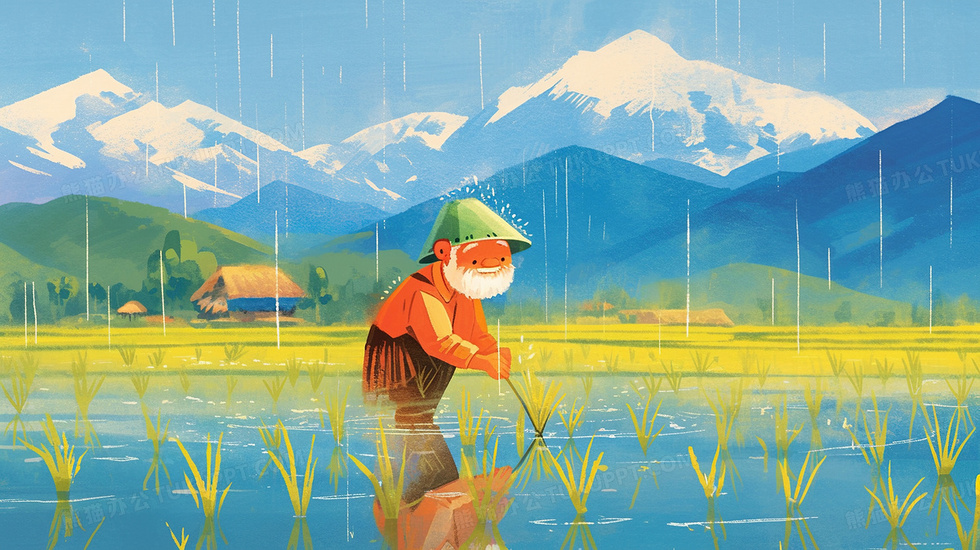本作品内容为雨天水稻田里插秧的农民伯伯农业插画, 格式为 jpg, 大小4 MB, 图片尺寸为2912 x 1632, 源文件无水印, 欢迎使用熊猫办公。 如认为平台内容涉嫌侵权,可通过邮件:tousu@tukuppt.com提出书面通知,我们将及时处理。