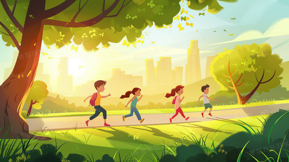 本作品内容为清晨孩子们早起在公园里跑步插画, 格式为 jpg, 大小3 MB, 图片尺寸为2912 x 1632, 源文件无水印, 欢迎使用熊猫办公。 如认为平台内容涉嫌侵权,可通过邮件:tousu@tukuppt.com提出书面通知,我们将及时处理。