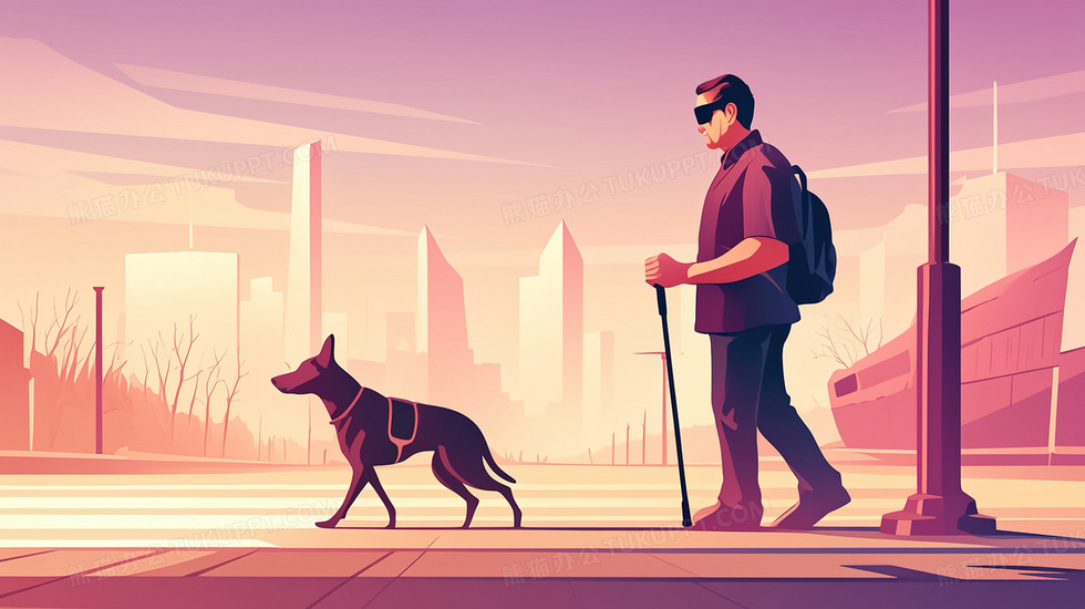 本作品内容为路上的导盲犬与男性盲人插画, 格式为 jpg, 大小2 MB, 图片尺寸为2912 x 1632, 源文件无水印, 欢迎使用熊猫办公。 如认为平台内容涉嫌侵权,可通过邮件:tousu@tukuppt.com提出书面通知,我们将及时处理。