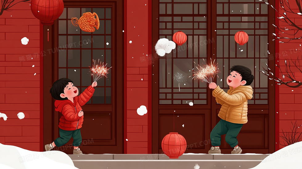 本作品内容为红色喜庆新年小男孩玩仙女棒插画, 格式为 jpg, 大小2 MB, 图片尺寸为2912 x 1632, 源文件无水印, 欢迎使用熊猫办公。 如认为平台内容涉嫌侵权,可通过邮件:tousu@tukuppt.com提出书面通知,我们将及时处理。
