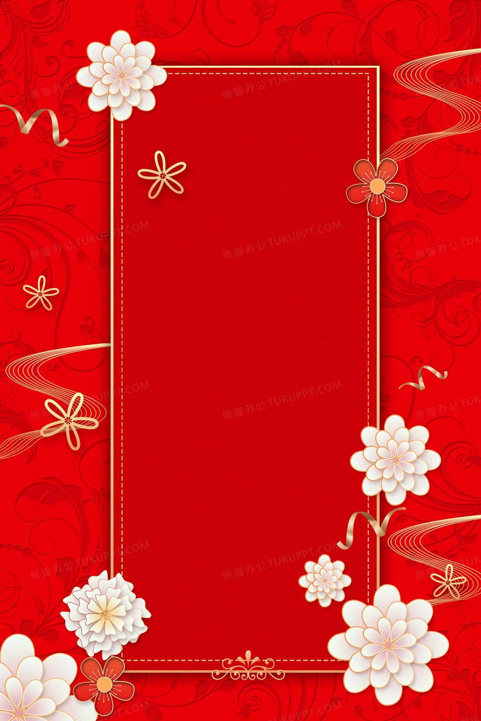 本作品内容为红色中国风暗花底纹立体花朵活动邀请函背景, 格式为 psd, 大小18 MB, 图片尺寸为3543 x 5315, 作品中背景图片无需修改, 源文件无水印,可以直接使用, 欢迎使用熊猫办公。 如认为平台内容涉嫌侵权,可通过邮件:tousu@tukuppt.com提出书面通知,我们将及时处理。