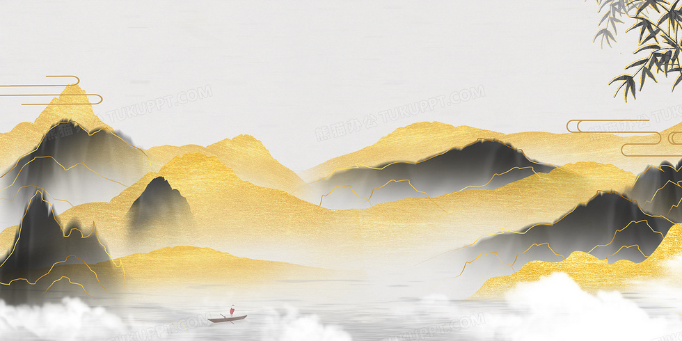 本作品内容为中国风金色山峰鎏金水墨山水背景, 格式为 psd, 大小91 MB, 图片尺寸为4724 x 2362, 作品中背景图片无需修改, 源文件无水印,可以直接使用, 欢迎使用熊猫办公。 如认为平台内容涉嫌侵权,可通过邮件:tousu@tukuppt.com提出书面通知,我们将及时处理。