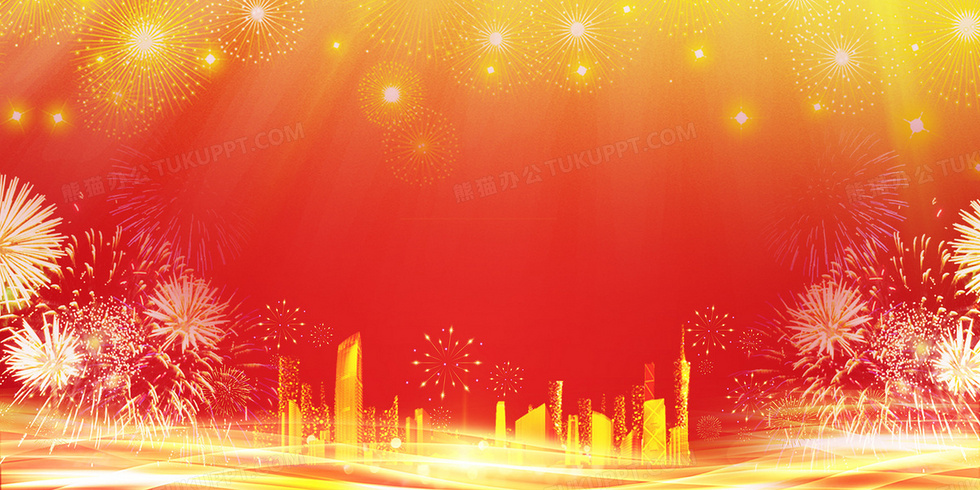 本作品内容为红金喜庆城市烟花背景, 格式为 psd, 大小81 MB, 图片尺寸为4724 x 2362, 作品中背景图片无需修改, 源文件无水印,可以直接使用, 欢迎使用熊猫办公。 如认为平台内容涉嫌侵权,可通过邮件:tousu@tukuppt.com提出书面通知,我们将及时处理。