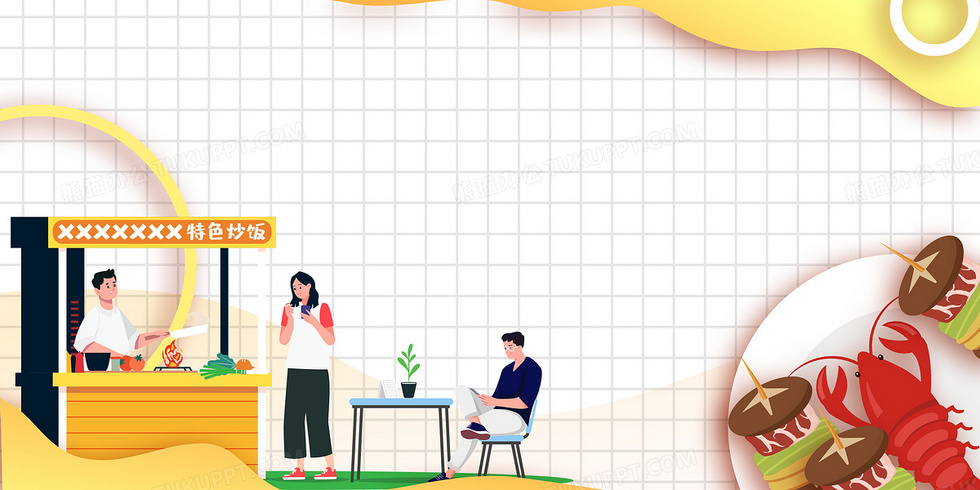 本作品内容为矢量扁平地摊经济市场小摊美食背景, 格式为 psd, 大小7 MB, 图片尺寸为4724 x 2362, 作品中背景图片无需修改, 源文件无水印,可以直接使用, 欢迎使用熊猫办公。 如认为平台内容涉嫌侵权,可通过邮件:tousu@tukuppt.com提出书面通知,我们将及时处理。