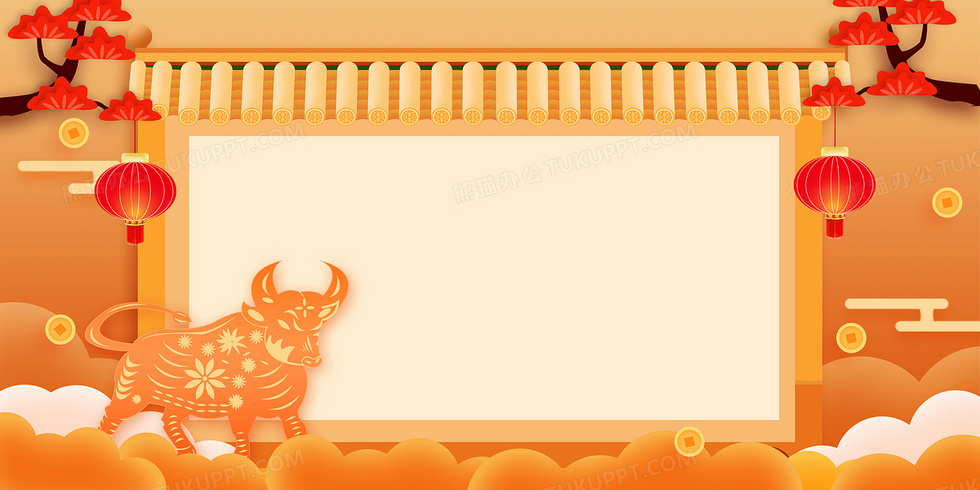 本作品内容为牛年新年剪纸春节假期放假通知背景, 格式为 psd, 大小16 MB, 图片尺寸为4724 x 2362, 作品中背景图片无需修改, 源文件无水印,可以直接使用, 欢迎使用熊猫办公。 如认为平台内容涉嫌侵权,可通过邮件:tousu@tukuppt.com提出书面通知,我们将及时处理。