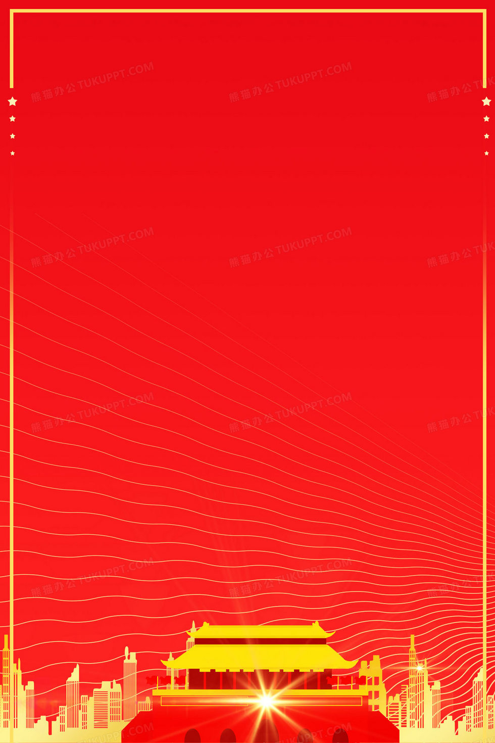 本作品内容为简约红金天安门党建党政创意背景, 格式为 psd, 大小10 MB, 图片尺寸为2362 x 3543, 作品中背景图片无需修改, 源文件无水印,可以直接使用, 欢迎使用熊猫办公。 如认为平台内容涉嫌侵权,可通过邮件:tousu@tukuppt.com提出书面通知,我们将及时处理。