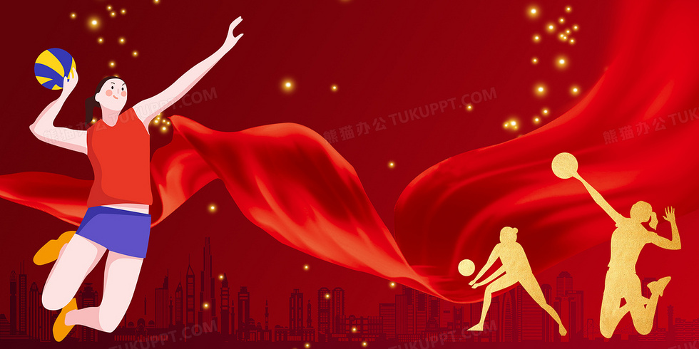 本作品内容为创意大气简约喜庆红色卡通剪影中国女排冠军夺冠背景, 格式为 psd, 大小35 MB, 图片尺寸为4724 x 2362, 作品中背景图片无需修改, 源文件无水印,可以直接使用, 欢迎使用熊猫办公。 如认为平台内容涉嫌侵权,可通过邮件:tousu@tukuppt.com提出书面通知,我们将及时处理。