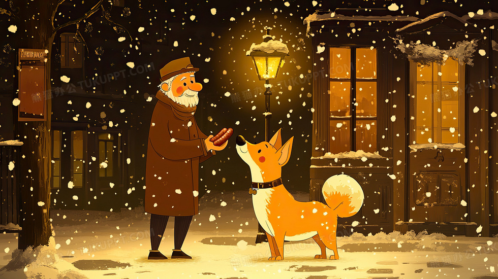 本作品内容为雪天里老伯给香肠给小狗插画, 格式为 jpg, 大小3 MB, 图片尺寸为2912 x 1632, 源文件无水印, 欢迎使用熊猫办公。 如认为平台内容涉嫌侵权,可通过邮件:tousu@tukuppt.com提出书面通知,我们将及时处理。